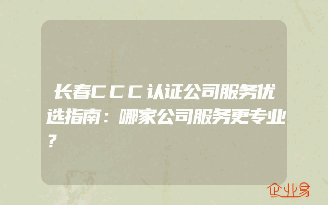 - 长春CCC认证公司服务优选指南:哪家公司服务更专业?