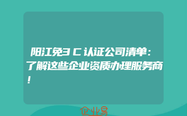 - 阳江免3C认证公司清单:了解这些企业资质办理服务商!
