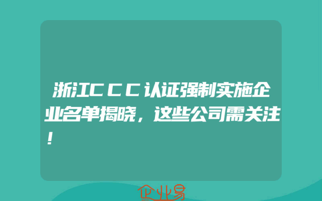 - 浙江CCC认证强制实施企业名单揭晓,这些公司需关注!