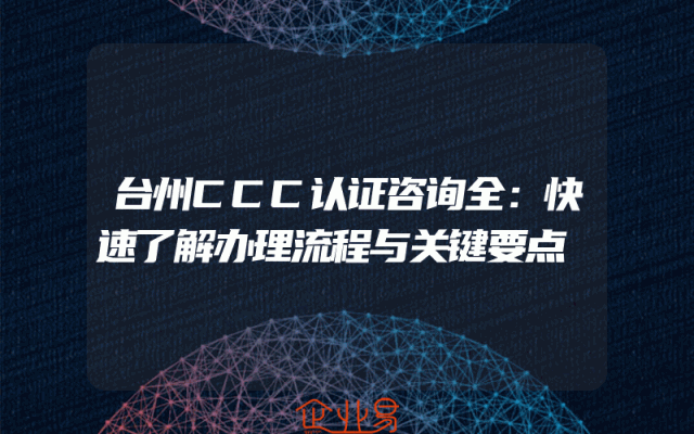- 台州CCC认证咨询全:快速了解办理流程与关键要点