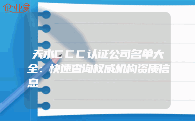 - 天水CCC认证公司名单大全:快速查询权威机构资质信息