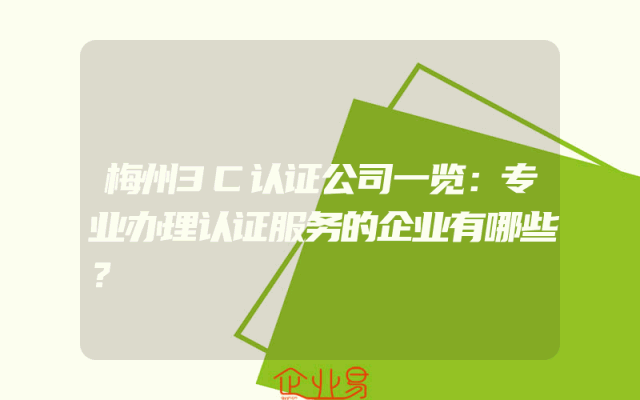 - 梅州3C认证公司一览:专业办理认证服务的企业有哪些?
