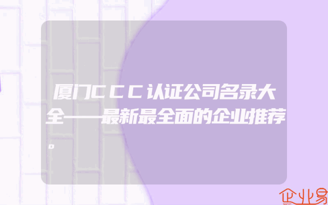 - 厦门CCC认证公司名录大全——最新最全面的企业推荐。