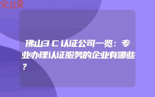 - 佛山3C认证公司一览:专业办理认证服务的企业有哪些?