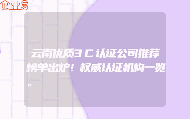 - 云南优质3C认证公司推荐榜单出炉!权威认证机构一览。