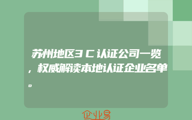- 苏州地区3C认证公司一览,权威解读本地认证企业名单。