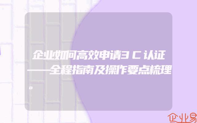- 企业如何高效申请3C认证——全程指南及操作要点梳理。