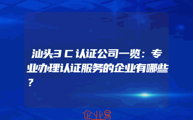 - 汕头3C认证公司一览:专业办理认证服务的企业有哪些?