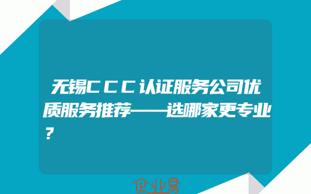 - 无锡CCC认证服务公司优质服务推荐——选哪家更专业?