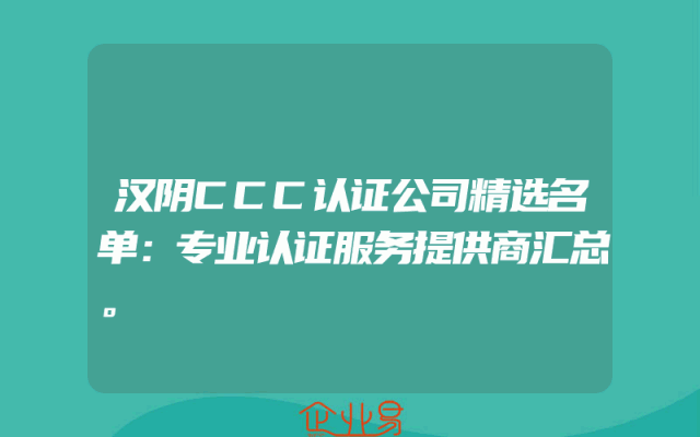 - 汉阴CCC认证公司精选名单:专业认证服务提供商汇总。
