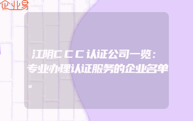 - 江阴CCC认证公司一览:专业办理认证服务的企业名单。