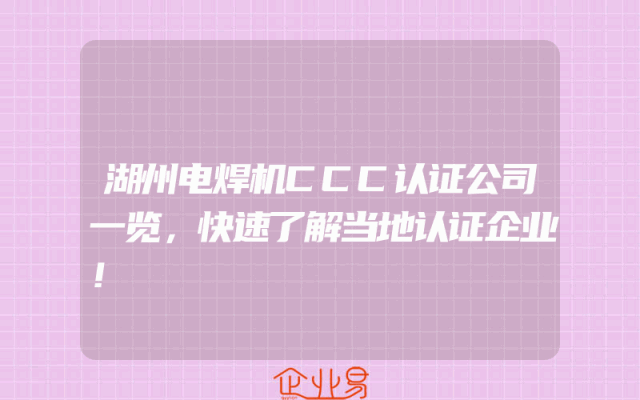 - 湖州电焊机CCC认证公司一览,快速了解当地认证企业!