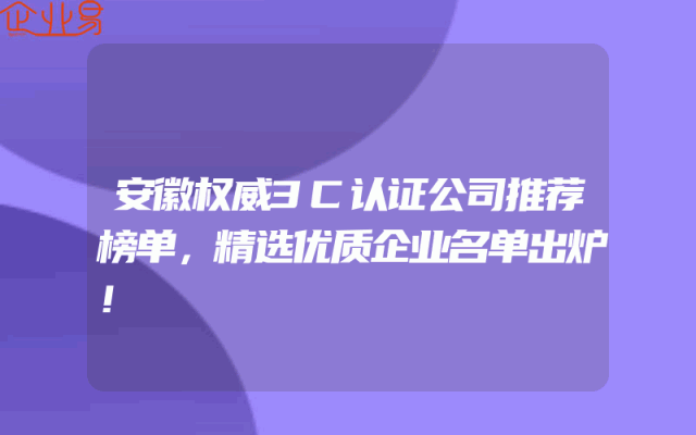 - 安徽权威3C认证公司推荐榜单,精选优质企业名单出炉!