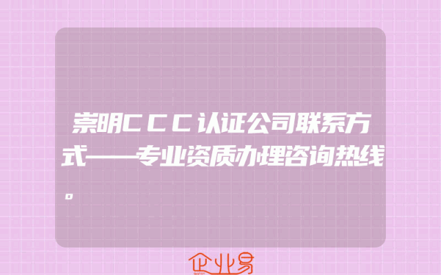 - 崇明CCC认证公司联系方式——专业资质办理咨询热线。