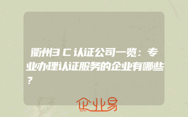 - 衢州3C认证公司一览:专业办理认证服务的企业有哪些?