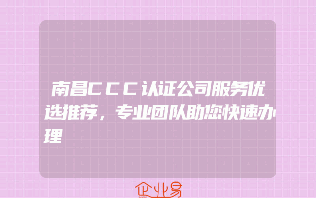 - 南昌CCC认证公司服务优选推荐,专业团队助您快速办理