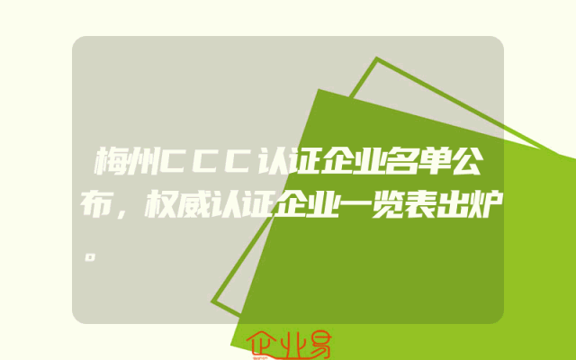 - 梅州CCC认证企业名单公布,权威认证企业一览表出炉。