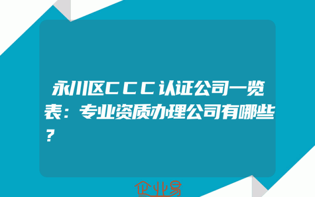 - 永川区CCC认证公司一览表:专业资质办理公司有哪些?