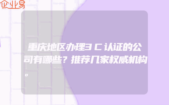 - 重庆地区办理3C认证的公司有哪些?推荐几家权威机构。