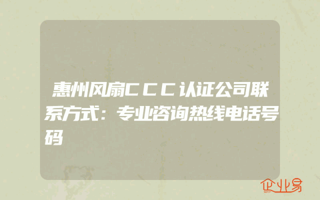 - 惠州风扇CCC认证公司联系方式:专业咨询热线电话号码