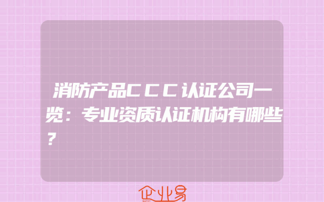 - 消防产品CCC认证公司一览:专业资质认证机构有哪些?