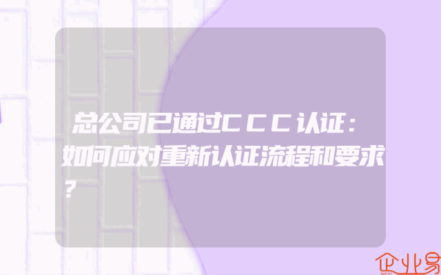 - 总公司已通过CCC认证:如何应对重新认证流程和要求?