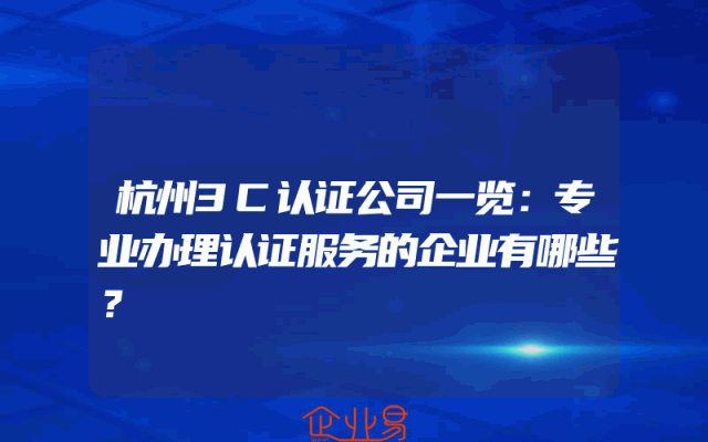 - 杭州3C认证公司一览:专业办理认证服务的企业有哪些?