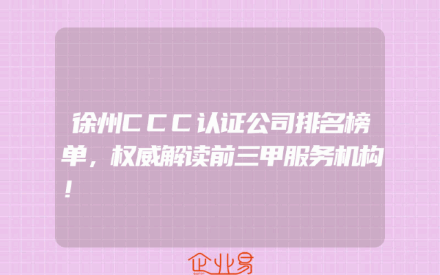 - 徐州CCC认证公司排名榜单,权威解读前三甲服务机构!