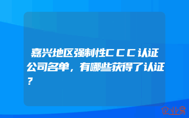 - 嘉兴地区强制性CCC认证公司名单,有哪些获得了认证?