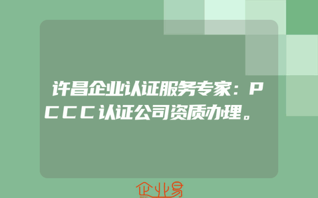 - 许昌企业认证服务专家:PCCC认证公司资质办理。
