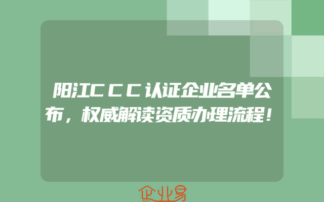 - 阳江CCC认证企业名单公布,权威解读资质办理流程!