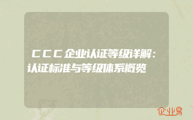 - CCC企业认证等级详解:认证标准与等级体系概览