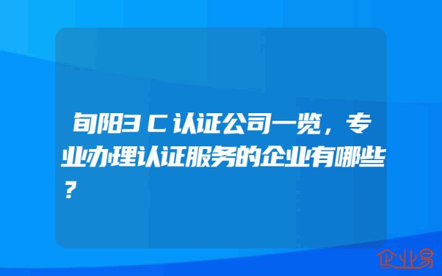 - 旬阳3C认证公司一览,专业办理认证服务的企业有哪些?