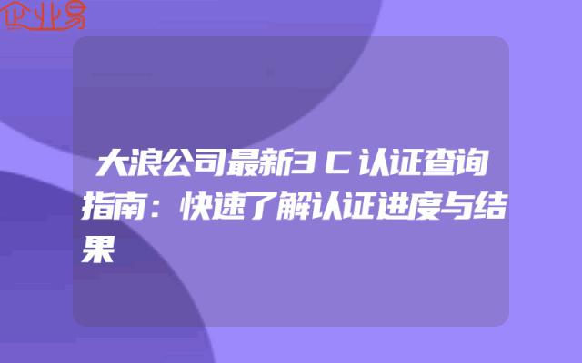 - 大浪公司最新3C认证查询指南:快速了解认证进度与结果