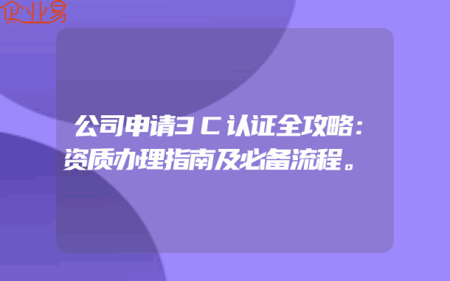 - 公司申请3C认证全攻略:资质办理指南及必备流程。