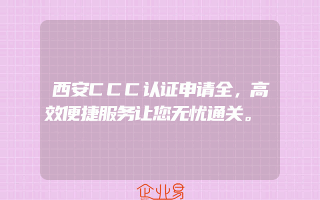 - 西安CCC认证申请全解析:高效便捷服务让您无忧通关一、CCC认证概述CCC认证,即中国强制认证,是中华人民共和国为保护消费者人身安全及动植物生命健康而设立的产品合格评定制度。对于想要进入西安市场的企业来说,了解CCC认证的申请流程与要求至关