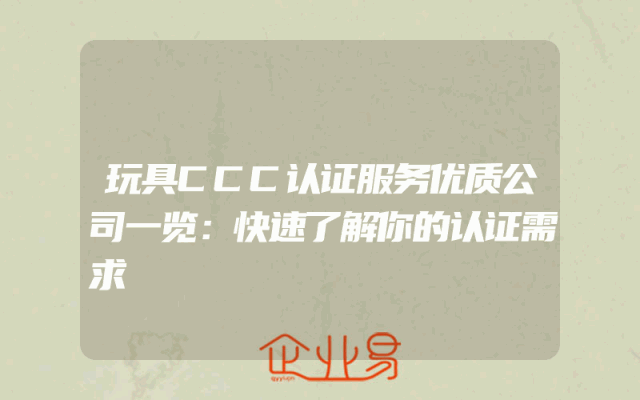 - 玩具CCC认证服务优质公司一览:快速了解你的认证需求