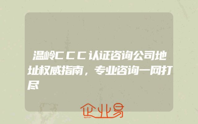 - 温岭CCC认证咨询公司地址权威指南,专业咨询一网打尽