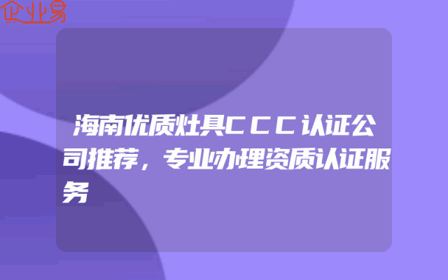 - 海南优质灶具CCC认证公司推荐,专业办理资质认证服务