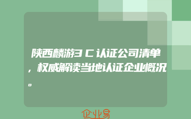 - 陕西麟游3C认证公司清单,权威解读当地认证企业概况。