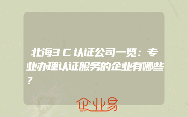 - 北海3C认证公司一览:专业办理认证服务的企业有哪些?