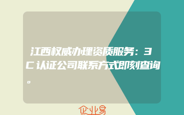 - 江西权威办理资质服务:探寻3C认证公司的联系方式身处商界,不少企业和个人都急需通过正规渠道获得资质认证以提升企业的竞争力。在江西地区,许多企业和品牌都面临着资质办理的需求,特别是需要寻求专业的资质认证服务时,如何找到可靠且权威的办理
