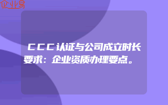 - CCC认证与公司成立时长要求:企业资质办理要点。