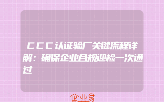 - CCC认证验厂关键流程详解:确保企业合规迎检一次通过