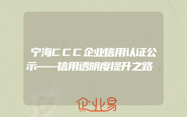 - 宁海CCC企业信用认证公示——信用透明度提升之路