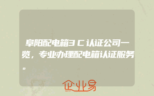 - 阜阳配电箱3C认证公司一览,专业办理配电箱认证服务。