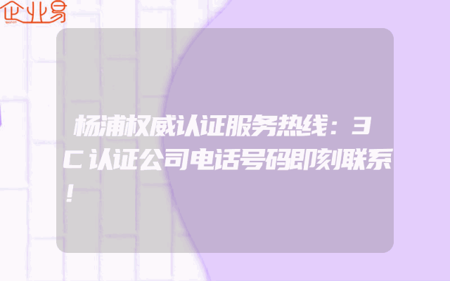 - 杨浦权威认证服务热线:3C认证公司电话号码即刻联系!