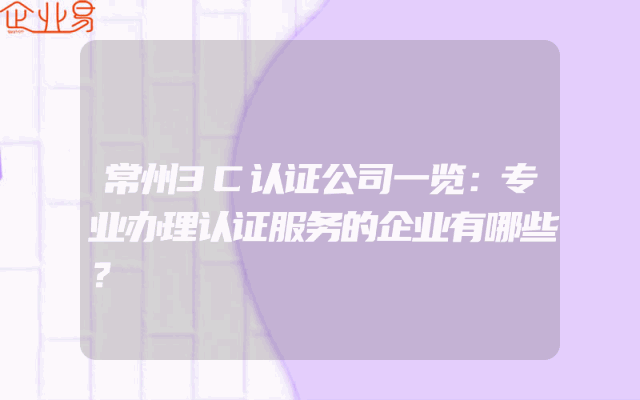 - 常州3C认证公司一览:专业办理认证服务的企业有哪些?