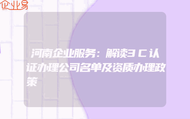- 河南企业服务:解读3C认证办理公司名单及资质办理政策