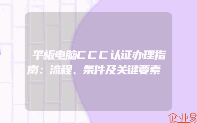 - 平板电脑CCC认证办理指南:流程、条件及关键要素
